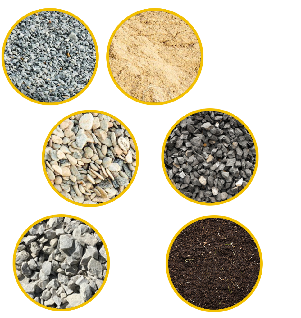 Piesok, štrky rôznej frakcie, makadam roznej frakcie, lomový kameň netriedený, ozdobný kameň, zemina